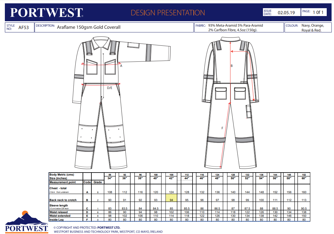 Datasheet - https://documents.portwest.com/datasheet.php?style=AF53&lang=GB&itemcol=AF53NAR&facility=902