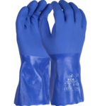 Soft triple dipped chemical resistant 12 inch blue PVC gauntlet.