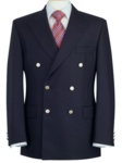 Double breasted, 2 button shows six, side vents, 4 interior pockets, fully lined, 3 button cuff, metal buttons, classic fit