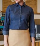 100% Cotton - Chambray. Tailored fit, faux horn buttons, contrast button detailing